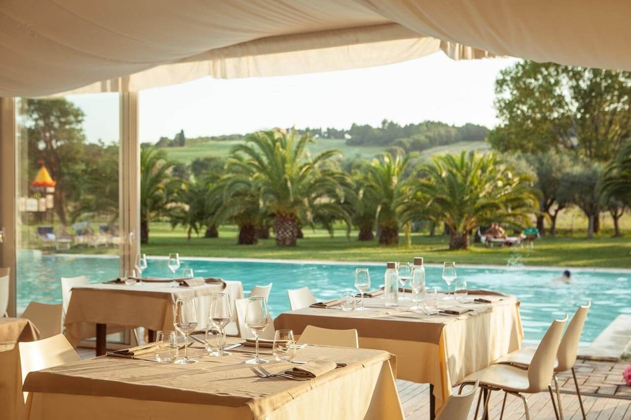 Coffee break nel parco, light lunch a bordo piscina e cene di gala. Menù curati per valorizzare i sapori del territorio.
